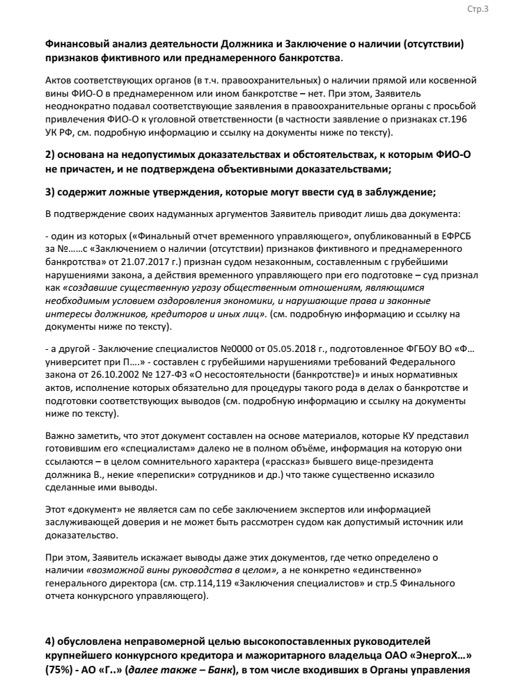 Правовая позиция [письменный образец] по делу о субсидиарной ответственности.